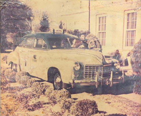 Below: (L) Walter Lunsford's Checkered Cab and (R) Ladies gathered at the Lunsford Dining Room table at their home on Lawyers Lane