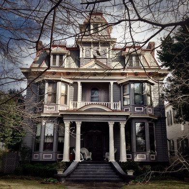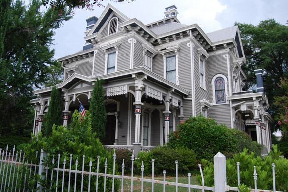Built in approximately 1898, the Bullock House (now Garrett-Bullock - above on right) is one of the most ornate Victorian houses in the Southeast and is characterized by its multiplicity of curved brackets and stained-glass windows.